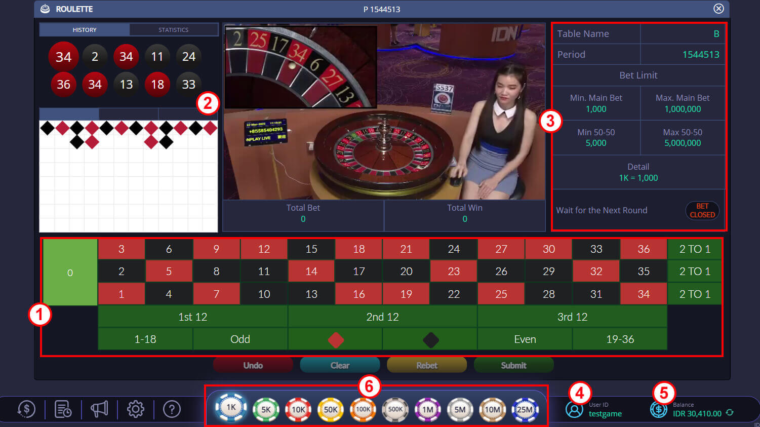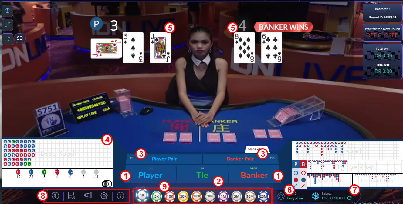 Taruhan pemain yaitu : Tepi sebesar Rp 100.000 dikenakan kei 2.5%. Artinya saldo yang akan kepotong untuk taruhan Rp 100.00 adalah 102.500